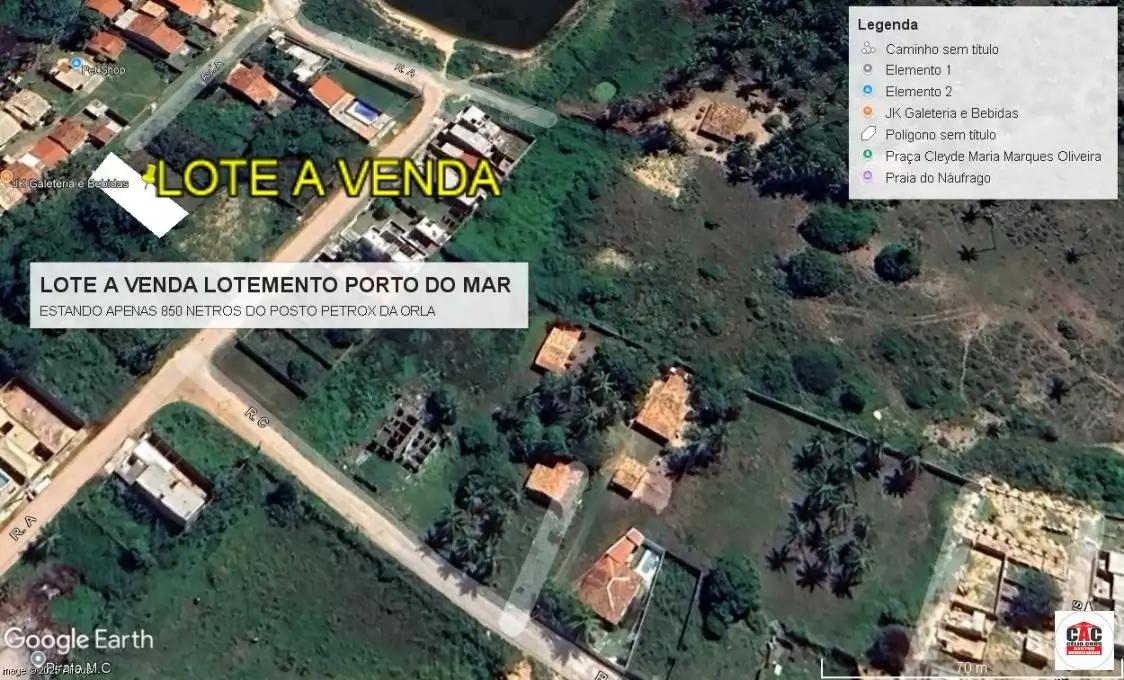 Excelente oportunidade! Lote medindo 10 metros de frente por 25 metros de profundidade, localizado no Loteamento Porto do Mar, a aproximadamente 850 metros do Posto Petrox da Orla.